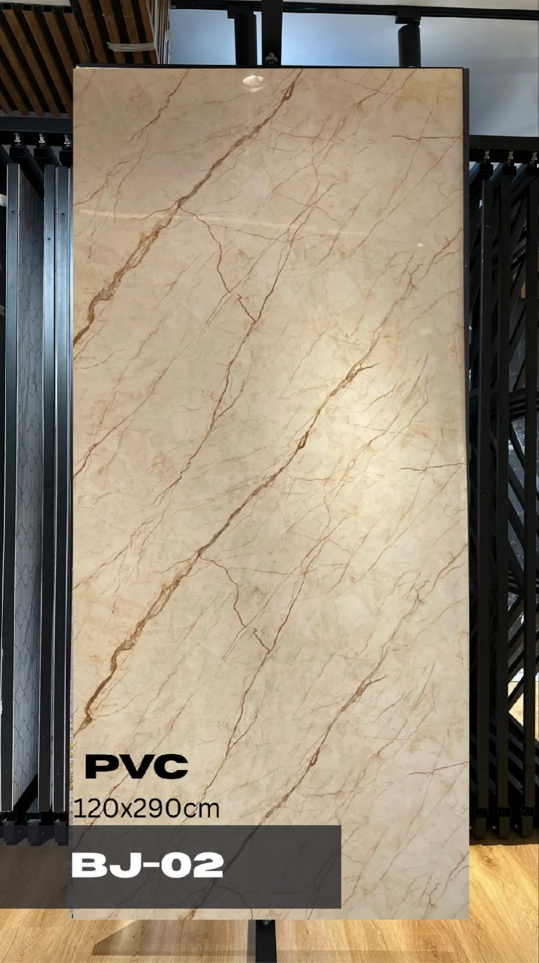 Pannello effetto marmo beige chiaro con venature calde color rame.Dona luminosita e calore all’ambiente combinando un’estetica classica con un tocco moderno.Ideale per:zone giorno,camere da letto,rivestimento bagno,spazi wellness o reception.Montaggio:Applicare il silicone adesivo sul retro del pannello e fissare direttamente sulla parete.